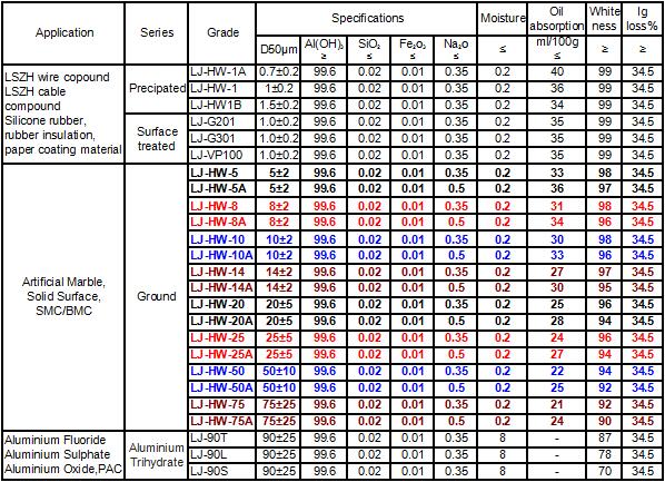 Coarse Powder High-Whiteness Aluminium Hydroxide is used in artificial marble, artificial agate. Production of artificial agate or artificial marble with ATH Coarse Powder and unsaturated polyester resin or methacrylic resin.